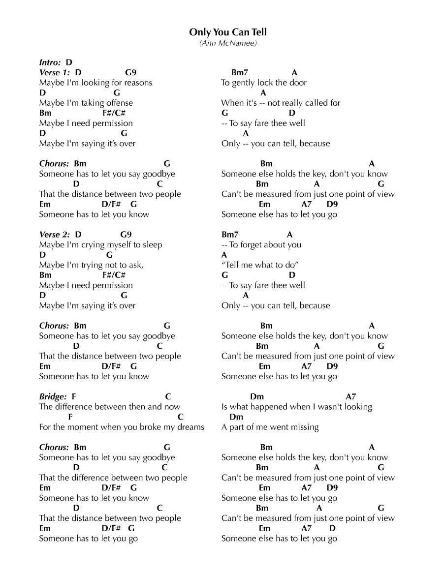 Ann McNamee: Vocals; Piano on track 9